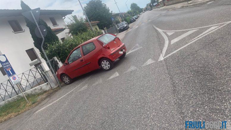 Ha destato curiosità l’insolito “parcheggio” di un’auto ferma questo pomeriggio a Udine, proprio in prossimità della rotonda tra via Baldasseria Bassa e via Lavariano.