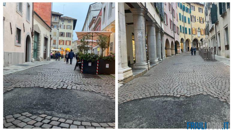 Buche, avvallamenti e pericoli per i pedoni nel cuore di Udine. A denunciare la situazione è Giovanna, residente da oltre trent’anni nel centro storico, che con una lettera accorata segnala il degrado delle strade e dei marciapiedi della zona.