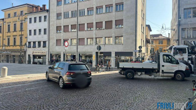 Transenne verso via Battisti, verso via Ginnasio Vecchio e anche verso via Stringher: per consentire i lavori di rifacimento della pavimentazione, Piazza XX Settembre a Udine è diventata una “piazza senza uscita”.