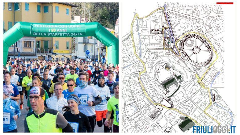 Il circuito di 2,2 chilometri, omologato da Fiasp – Aps di Udine, è una novità assoluta. La staffetta, infatti, scatterà da piazza I Maggio (angolo via Manin), per poi proseguire lungo l’ellissi, passando per un piccolo tratto di via Portanuova e davanti al giardino di Palazzo Antonini Maseri; quindi, ci si immetterà in via Della Vittoria, per poi prendere via Giovanni da Udine, via Gemona, riva Bartolini, via Mercatovecchio, piazza Libertà, via Vittorio Veneto, via Marinelli, via Della Prefettura, via Lovaria e piazza Patriarcato, tornando quindi in piazza I Maggio. Giardin Grande si conferma cuore pulsante della manifestazione grazie al Villaggio Telethon.