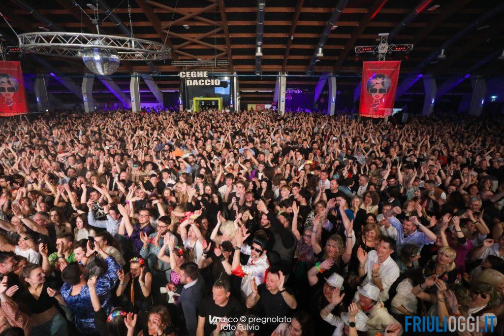 Colorata, festosa, travolgente. Sono solo tre degli aggettivi che possono descrivere, tra i tanti, la serata del Ceghedaccio, il più grande evento dedicato agli appassionati di musica anni ’70, ’80 e ’90 tornato “in pista” ieri sera, 21 aprile, come tradizione vuole al padiglione 6 della Fiera di Udine.