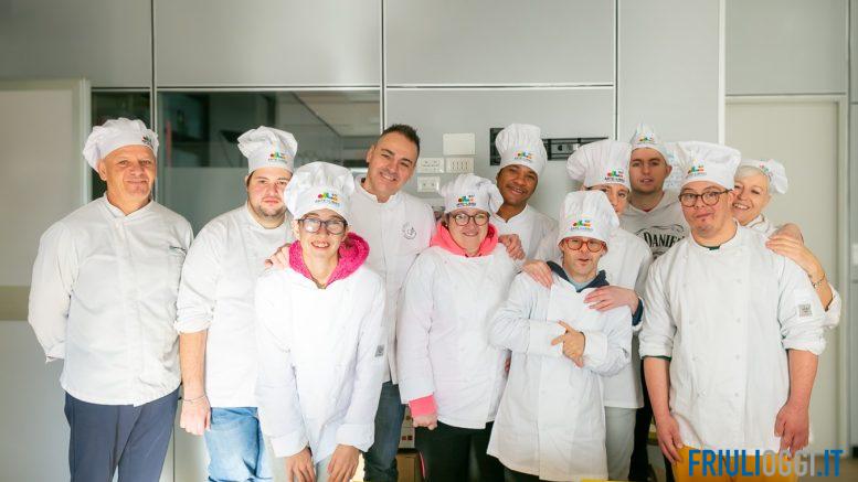 Massimiliano Sabinot è arrivato a metà mattina, ha indossato la divisa da chef, ha iniziato a cucinare. I ragazzi al lavoro nella sede di Arte e Libro Ets Udine lo hanno guardato con grande attenzione, aggiungendo nuove informazioni nel loro percorso “Divergente gourmet: mordi il pregiudizio”, guidato da ormai tre anni, per quel che riguarda le lezioni di cucina, da Daniele Cinel, assieme alle tutor Marinella Fedrigo e Teresa Covaceuszach.
