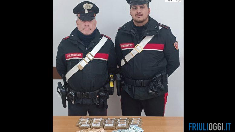 La ricerca meticolosa ha dato i suoi frutti allorquando gli operanti si sono accorti del chiaro odore di hashish proveniente dall’abitacolo lato passeggero: svitato ed aperto uno sportello posto dietro il vano portaoggetti, i carabinieri hanno rinvenuto al suo interno 2 chili di quella sostanza stupefacente suddivisi in panetti, nonché 2.900 euro in contanti, ritenuti provento di attività illecita, il tutto posto sotto sequestro. I due uomini, condotti in caserma per ulteriori accertamenti, sono stati tratti in arresto e associati presso la Casa Circondariale di Udine, come disposto dalla Procura.