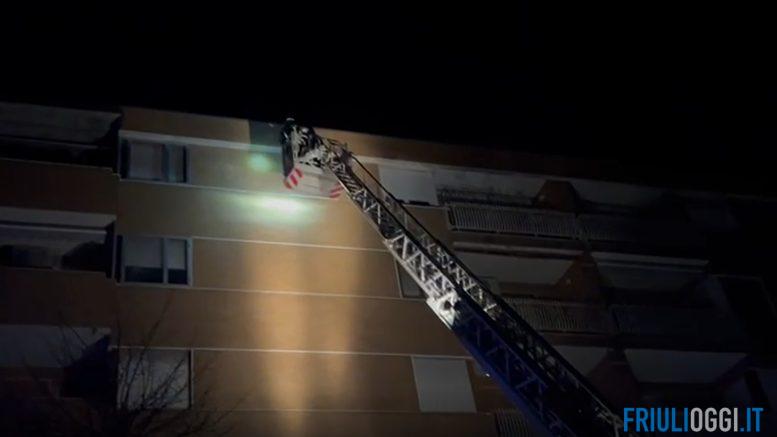 Intervento dei vigili del fuoco questa notte intorno alle ore 1 in via Leonardo da Vinci a Udine per la caduta di un cornicione di un palazzo all’altezza della pizzeria alle due Palme.