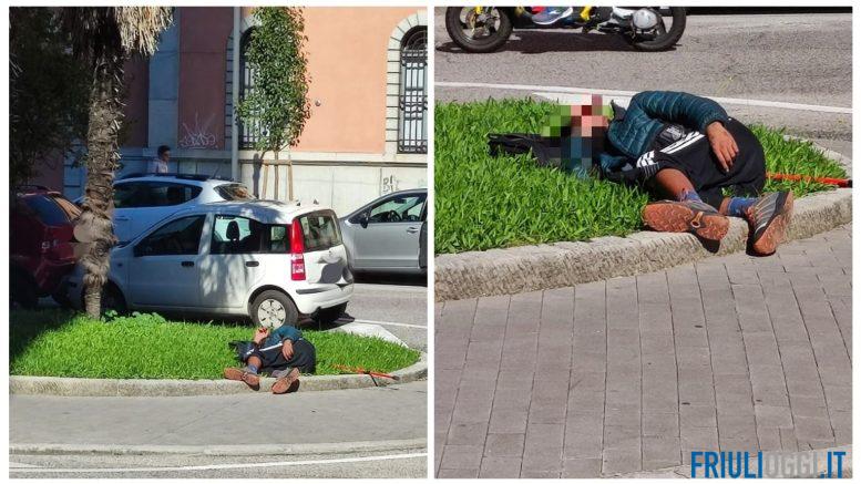 È sempre più sconvolgente la situazione che si presenta nei pressi della stazione delle corriere di Udine, dove il degrado è arrivato a toccare il fondo. Nella giornata odierna infatti, poco dopo le 13, quando tutti gli studenti si accingevano a raggiungere la corriera per fare ritorno a casa, dall’altra parte della strada, a ridosso di Via Leopardi, un ragazzo di origine straniera è stato avvistato mentre era si era letteralmente ‘buttato’ a terra a dormire sopra l’aiuola, senza preoccuparsi del contesto nel quale si trovava.