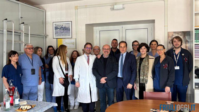 Alla cerimonia di consegna, svoltasi direttamente nel reparto, hanno partecipato il Direttore generale dell’ASUFC Denis Caporale, la presidente dell’Associazione Malati Reumatici del FVG Marinella Monte, insieme all’intera équipe medica della Clinica reumatologica.