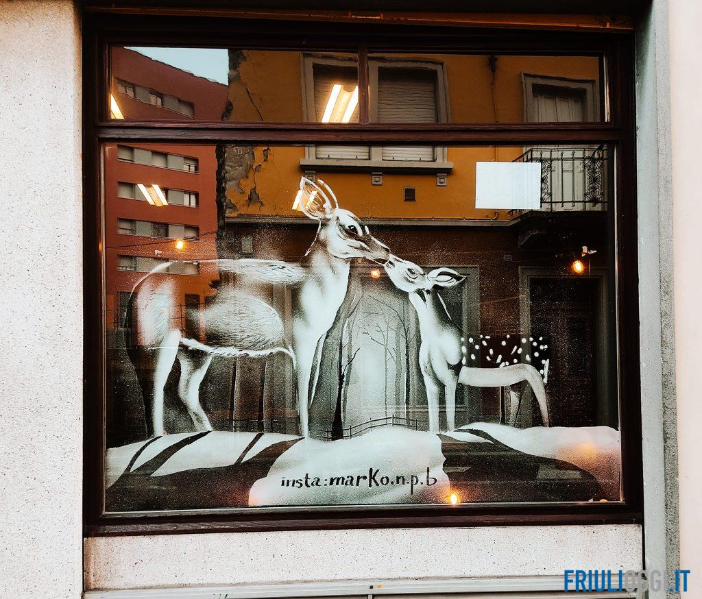 Tanta determinazione è stata premiata: è stato scelto per “E adesso sono qui”, progetto di educazione al patrimonio culturale promosso dalla Soprintendenza e dedicato a persone nate o cresciute al di fuori dell’Italia, ma che adesso vivono qui; e quest’anno ha potuto mostrare la sua creatività decorando diverse vetrine di negozi, che si possono ammirare in via Pradamano, via Bertaldia, via Roma, viale Palmanova e viale San Daniele (solo per citarne alcune). E, non c’è che dire, con la sua arte ha saputo dare ancora più magia al Natale.