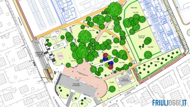 All’interno e nel comprensorio dell’ex Caserma Osoppo nell’area est della città, infatti, è in corso una vera trasformazione, da zona militare dismessa, si sta diventando un nuovo polo esempio di rigenerazione urbana, destinato a ospitare servizi, associazioni, uffici pubblici e un nuovo polo dell’infanzia 0-6, nonché un nuovo complesso residenziale di prossima inaugurazione. In questa fase, il quadro economico ipotetico per la realizzazione del nuovo parco ammonta a un milione e 300 mila euro.