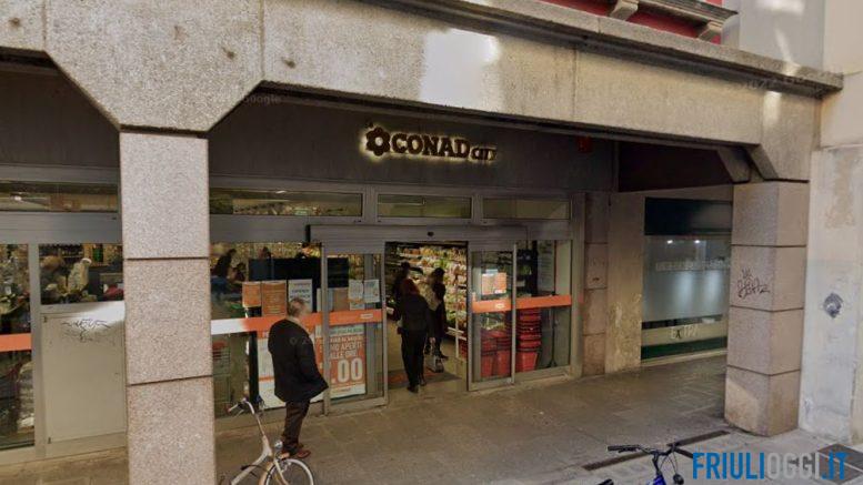 Furto al supermercato Conad di via Vittorio Veneto a Udine.