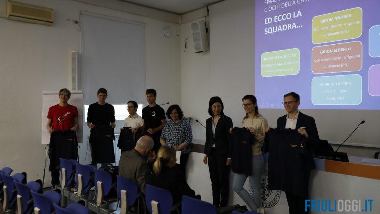 I Giochi, organizzati annualmente dalla Società Chimica Italiana, su incarico del Ministero dell’Istruzione, hanno l’obiettivo di stimolare tra i ragazzi delle scuole secondarie di secondo grado l’interesse per tale disciplina. Il 29 aprile le Università di Udine e di Trieste hanno ospitato le finali regionali: le prove, diverse per le tre classi di concorso, sono consistite in 60 quesiti a risposta multipla, da risolvere entro due ore e mezza. Sabato scorso, dunque, a Palazzo Antonini, nella Sala Gusmani, sono stati consegnati i vari riconoscimenti.