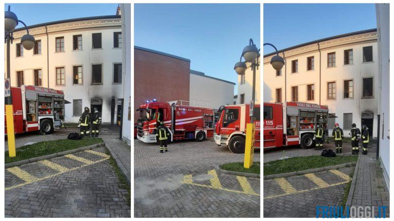Incendio questo pomeriggio poco dopo le 15 alla biblioteca del polo economico giuridico dell’università di Udine, in via Tomadini.