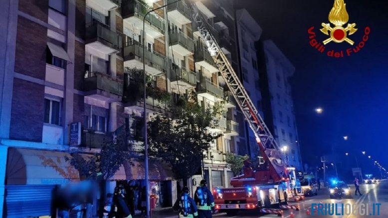 Incendio in un condominio di piazzale Chiavirs, a Udine. L’allarme è scattato intorno alle 22 del 7 ottobre. Sul posto i Vigili del fuoco del comando di Udine con le partenze dei distaccamenti di Cividale e Codroipo, una squadra, due autoscale, un’autobotte e il funzionario di guardia della sede centrale del comando friulano.