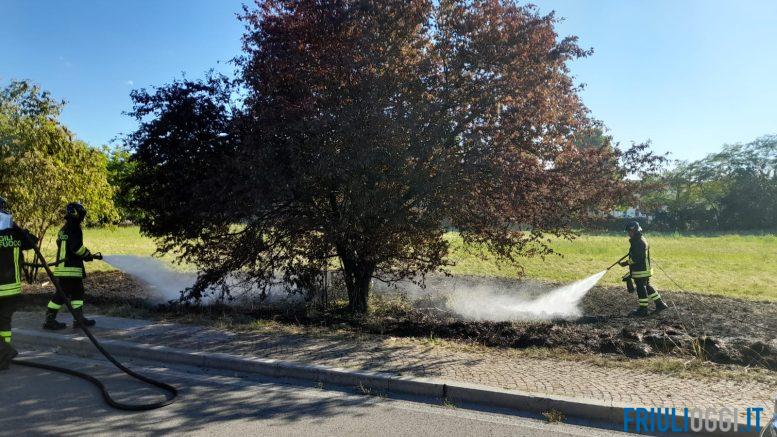 Vigili del fuoco in azione questo pomeriggio in via Castions di Strada a Udine, dove un’area verde ha preso fuoco.