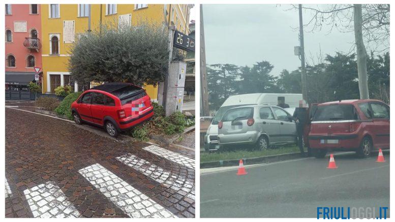 Doppio incidente nel pomeriggio di oggi a Udine dove, probabilmente a causa della pioggia, due auto sono finite fuori strada sulle aiuole.