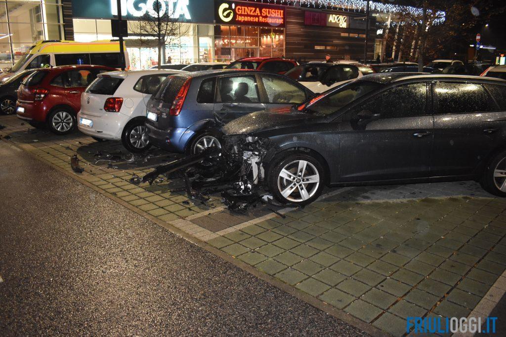 Un pomeriggio di paura al parco commerciale Centro Studi in piazzale Rita Levi Montalcini a Udine a causa di un rocambolesco incidente avvenuto attorno alle 17:20. Una Volkswagen Golf, dopo un contatto con una BMW, ha perso il controllo andando a collidere contro tre auto parcheggiate prima di terminare la sua corsa contro la vetrata del supermercato Eurospar.