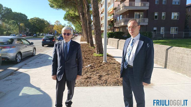 Conclusa la sistemazione di marciapiedi e ciclabile di viale Cadore a Udine, una riqualificazione condotta senza abbattere i pini marittimi, le cui radici avevano creato dissesti al fondo stradale.