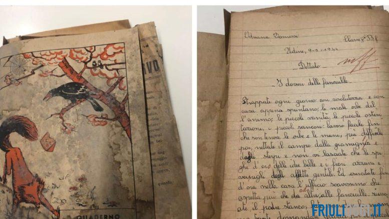I temi e i compiti risalenti al 1944 ritrovati durante i lavori alla scuola Nievo di Udine.