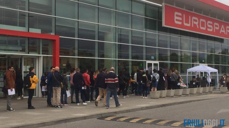 Tutti in fila davanti all’Eurospar di Udine, in cerca di lavoro. Oggi, sabato 24, era infatti in programma il Job Day presso l’Eurospar piazzale Rita Levi Montalcini 1, indetto da Aspiag service per conoscere, selezionare e assumere da subito nuovo personale.