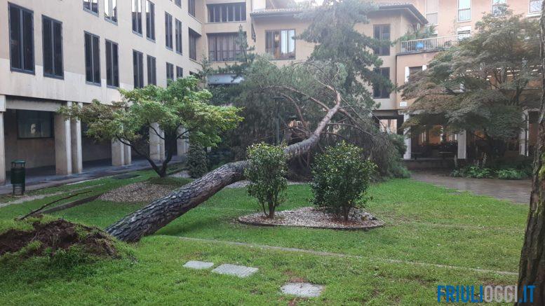 Nonostante il maltempo non abbia confermato la potenza di lunedì sera, la pioggia continua a provocare danni a Udine: nella serata di ieri, infatti, è caduto un albero nella centralissima Piazzetta Belloni. Si tratta di un pino. Per fortuna, nessuno è rimasto ferito, ma il transito è parzialmente bloccato anche per verificare la staticità dell’altro albero presente.