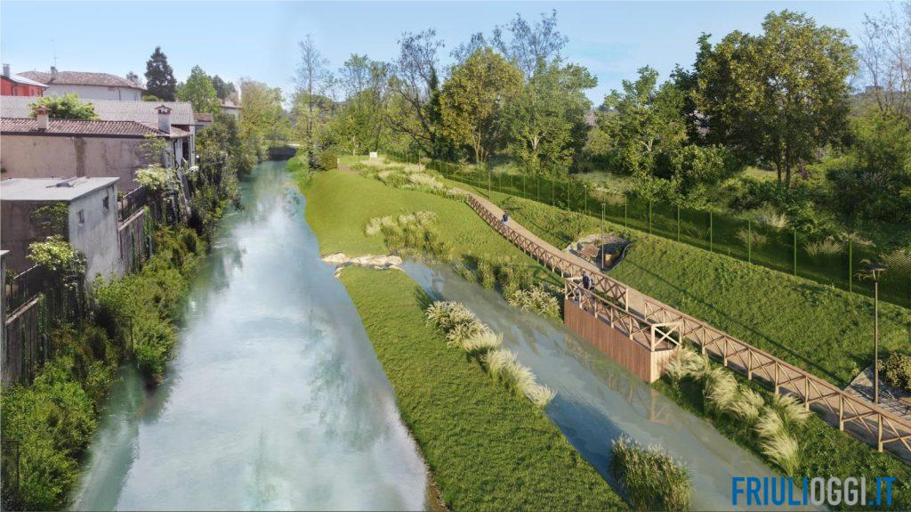 “Si tratta della rigenerazione di un’area verde fino ad oggi in stato di abbandono con la creazione di uno spazio ombreggiato, fruibile da pedoni e ciclisti, attraente e funzionale a garantire lo sviluppo della biodiversità e il sollievo dalle isole di calore urbane” spiega l’assessore comunale alla viabilità, Ivano Marchiol. “Un’importante riqualificazione fluviale in ambito urbano nella zona del canale Ledra-Tagliamento con una piccola deviazione fluviale per creare un’area umida naturale, la creazione del primo parco cittadino con accesso alla roggia“.
