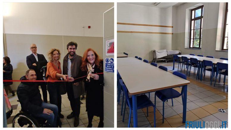 Attualmente sono 56 gli alunni iscritti alla mensa scolastica, su un totale di 194 studenti dell’istituto. Il Comune di Udine, attento alle esigenze delle famiglie e degli studenti, ha reso possibile questo importante passo avanti non solo potenziando il servizio di refezione, ma anche completando a tempo di record l’allestimento di una cucina interna e due sale dedicate, che permettono agli alunni di pranzare in un ambiente adatto e fuori dalle aule scolastiche. Al termine dei lavori sono stati installati degli allestimenti ad hoc per la ristorazione con sedie e tavoli nuovi specifici e nuove stoviglie lavabili. Le due aule dedicate possono ospitare in totale 76 alunni.
