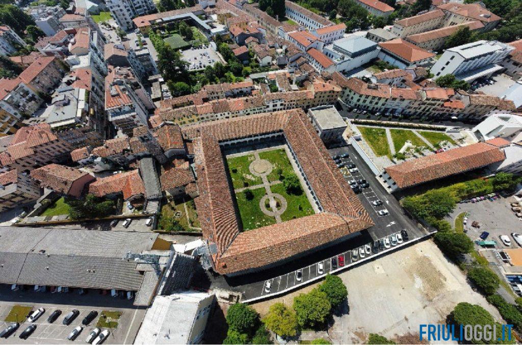 Il complesso è situato nel centro storico di Udine tra residenze e attività commerciali. L’Ex caserma (ex sede del Circolo Ufficiali) è articolata in un corpo centrale di impianto cinquecentesco con rifacimenti databili fino al secolo scorso e una serie di edifici secondari di epoca successiva che si sviluppano all’interno del muro perimetrale. Il complesso è in uso governativo al Ministero della Cultura ma potrebbe essere destinato a ricollocare gli Uffici Finanziari attualmente in locazione passiva.