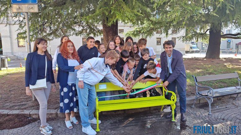 Inaugurata oggi a Udine, in piazza Garibaldi, nei pressi della fermata dell’autobus e di fronte alla scuola Manzoni, parte dell’istituto comprensivo 3, una panchina gialla simbolo dell’impegno contro il bullismo. È la prima a Udine e in Friuli Venezia Giulia, l’85esima in Italia, parte di una rete monitorata e gestita dall’associazione Helpis onlus, impegnata in un progetto di sensibilizzazione antibullismo e anti cyberbullismo che ha il patrocinio del Ministero dell’Interno e di Anci.