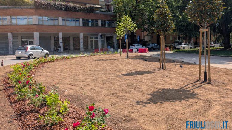 La vera novità di questa fase riguarda la componente ambientale, curata non come semplice abbellimento, ma come parte integrante del progetto. Davanti all’istituto Zanon sono già stati piantati nuovi tigli e magnolie, protetti da una siepe di rose, mentre la grande rotatoria centrale diventerà un “cuore profumato” grazie a una selezione di lavanda e iperico. Nelle vie limitrofe, come via Superiore, via Bassi e viale Ledra, sono state invece scelte graminacee ornamentali per garantire bellezza tutto l’anno con una manutenzione sostenibile.