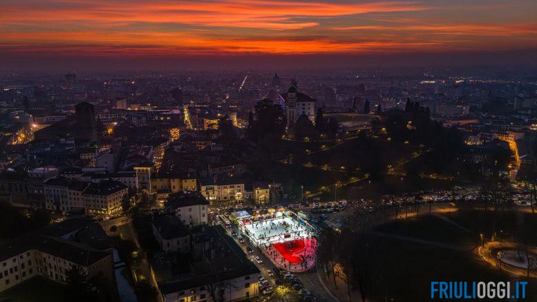 La pista di pattinaggio in Piazza Primo Maggio a Udine.