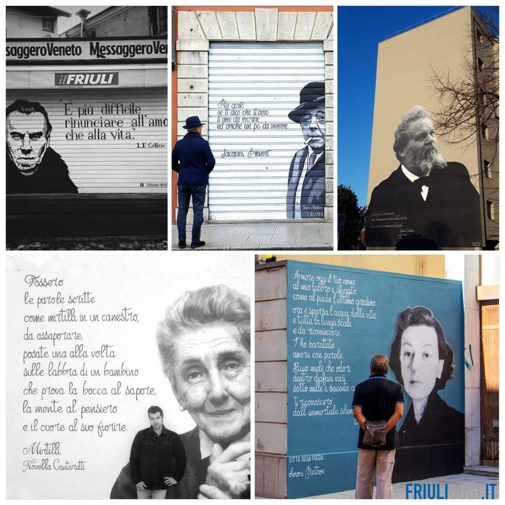 Divulgare l’arte letteraria dipingendola sui muri e rendendola quindi accessibile ed apprezzabile a tutti. Questo è il fulcro del progetto “Città della Poesia” nato il 1 maggio 2018 grazie all’artista udinese Simone Mestroni, 34 anni, che in pochissimo tempo, un annetto circa, ha saputo trasformare la passione per i grandi poeti e per le icone letterarie in un vero e proprio lavoro.