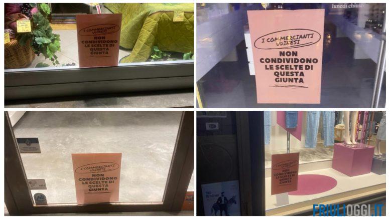 “I commercianti udinesi non condividono le scelte di questa giunta”: è questo il cartello di protesta apparso sulle vetrine di oltre 50 negozi del centro di Udine.