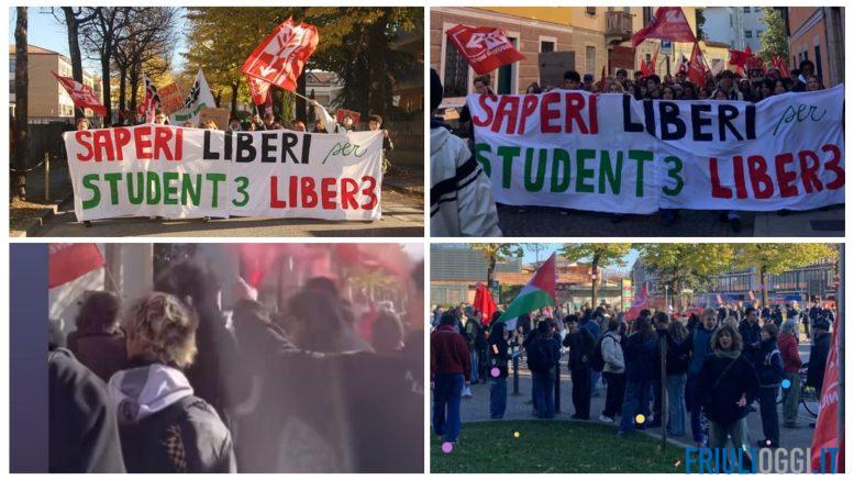 La manifestazione ha avuto un duplice obiettivo: contestare le politiche sull’istruzione del governo e della Regione Friuli Venezia Giulia e portare l’attenzione su questioni globali, come il conflitto israelo-palestinese. Il corteo, colorato da bandiere, striscioni e scandito da canti, si è fermato davanti a Palazzo Antonini, sede dell’Università di Udine, per lanciare un messaggio forte e chiaro: interrompere ogni collaborazione con Israele come segno di protesta contro la guerra in corso.