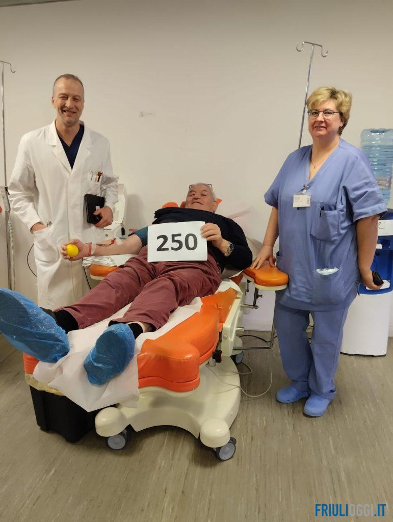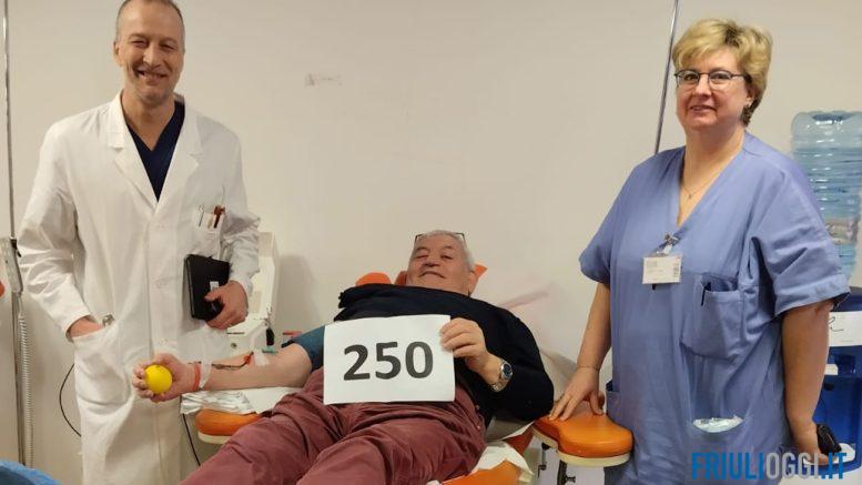Dino Durì, classe 1960, si è sottoposto alla 250esima donazione di sangue.