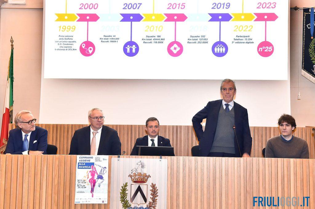 Quella di Udine è da tempo la manifestazione più importante nel panorama della ‘Maratona Telethon’ nazionale. Dal 2015, grazie alla solidarietà di tantissime persone, la Staffetta ha raccolto e devoluto interamente a Fondazione Telethon oltre 1,8 milioni di euro. Nel 2023 al via c’erano 690 squadre, per un totale di oltre 18mila persone, contando anche i 1.600 studenti iscritti alla Staffetta Giovani e i 230 militari di varie nazionalità che hanno dato vita a una speciale manifestazione in contemporanea in Kosovo.