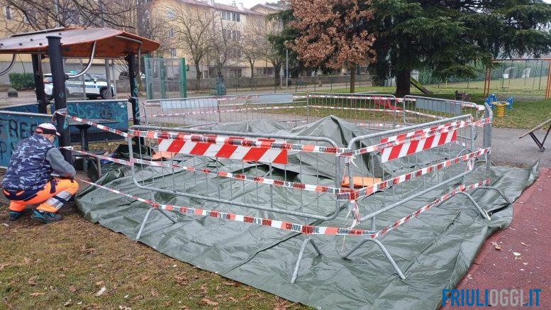 Rifiuti bruciati nel quartiere Aurora di Udine: recintata e coperta l’area.