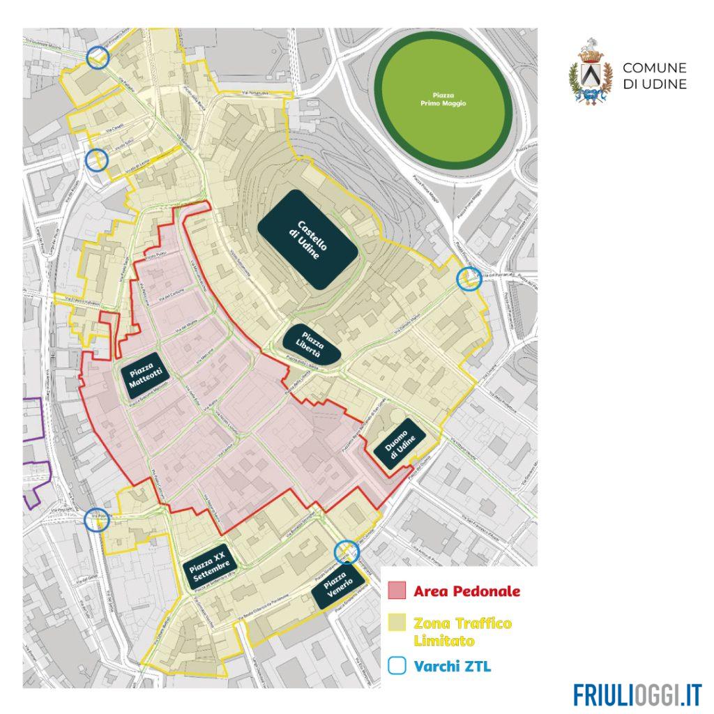 I nuovi spazi che andranno ad essere limitati al traffico veicolare generico sono: Piazza XX Settembre, comprese via Poscolle (alta) e via Battisti, via Stringher a sinistra di via Savorgnana, Piazza Venerio a sud, via Portanuova,via Erasmo Valvason, piazza San Cristoforo, vicolo Sillio, via Caiselli, via Palladio, piazzetta Petracco, dove sarà spostato il varco, a nord.