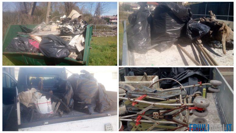 A occuparsi della pulizia del Canale Principale, tra i Rizzi e via delle Ferriere, è stato il personale del Consorzio di Bonifica Pianura Friulana: sono stati trovati soprattutto imballaggi di plastica e bottiglie di vetro, ma anche copertoni, camere d’aria e persino un passeggino.