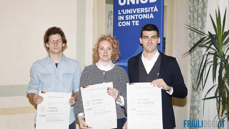 I premi di laurea, del valore di 2000 euro ciascuno, sono istituiti e sostenuti dall’Ausir in collaborazione con l’Ateneo friulano. I vincitori dei riconoscimenti sono: Matteo Brandalise, di Conegliano, laureato in Ingegneria per l’ambiente, il territorio e la protezione civile; Daniela Glaneo, di Maniago, laureata in Giurisprudenza; Andrea Narder, di Santa Lucia di Piave, laureato in Ingegneria meccanica.