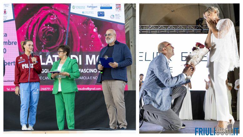 Una serata di eleganza e coraggio, con tanto di proposta di matrimonio in passerella, ha illuminato piazza Libertà, dove l’Andos di Udine ha organizzato una sfilata speciale per sensibilizzare sulla prevenzione del tumore al seno. Domenica 21 settembre, 28 donne che stanno affrontando o hanno affrontato un percorso oncologico e tre medici del CRO di Aviano e dell’ASUFC di Udine hanno sfilato indossando abiti d’alta moda firmati Atelier Emé, trasformando la passerella in un messaggio di rinascita.