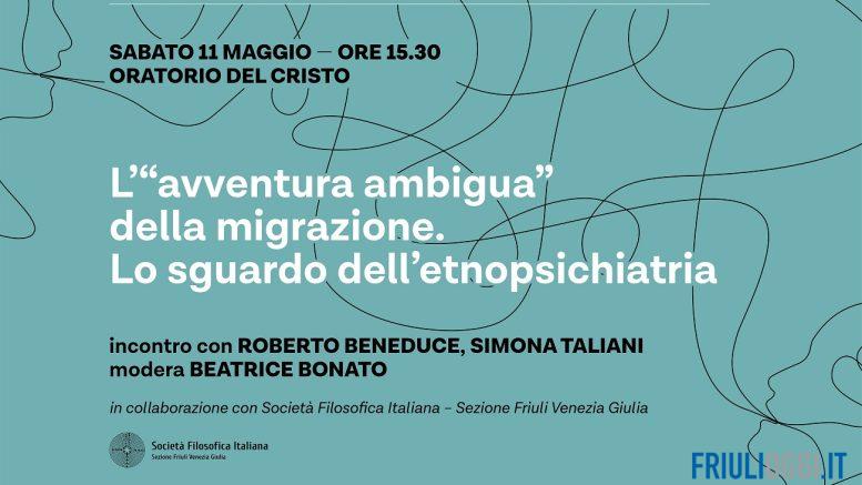 Sabato 11 maggio, alle ore 15.30, all’Oratorio del Cristo,si terrà l’incontro “L’avventura ambigua della migrazione. Lo sguardo dell’etnopsichiatria”, con Roberto Beneduce e Simona Taliani, moderati da Beatrice Bonato.