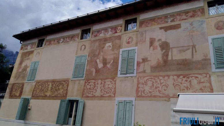 L’edificio nacque come dependance dell’Hotel di Gaetano Ghedina, i cui figli a metà Ottocento decisero invece di decorarlo come fosse un quadro a cielo aperto, visibile a chiunque si trovi a passare da quelle parti. Ora, grazie all’intervento di restauro curato dallo studio di Udine, Ciàsa de i Pùpe ha potuto riacquistare i colori e le sfumature originali.