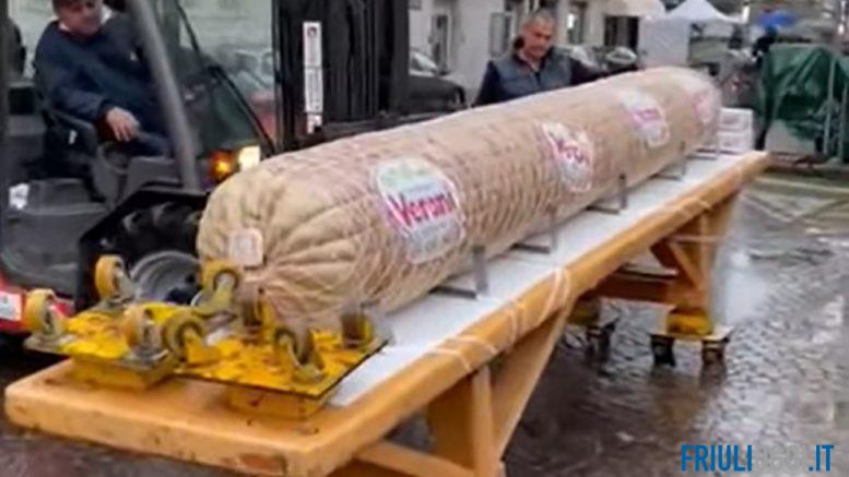 Nove quintali di peso, cinque metri di lunghezza, due giorni per finirla: è il destino toccato in sorte alla super mortadella che era arrivata giovedì in piazza Duomo a Udine, trasportata da un muletto. Intorno alle 21 di sabato sera era già finita. Divorata praticamente prima che la festa iniziasse.