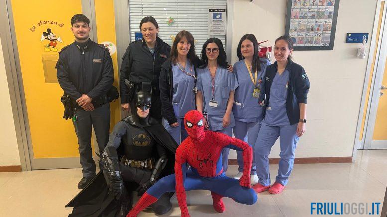Supereroi in corsia a Udine: Polizia e volontari regalano sorrisi ai piccoli pazienti