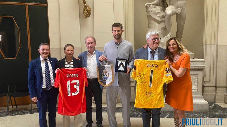 Ad accoglierlo nella sala del Consiglio comunale il sindaco Alberto Felice De Toni, il vicesindaco Alessandro Venanzi e l’assessora allo sport Chiara Dazzan, tutti concordi nel definire Vicario un ambasciatore dell’eccellenza udinese nel mondo.