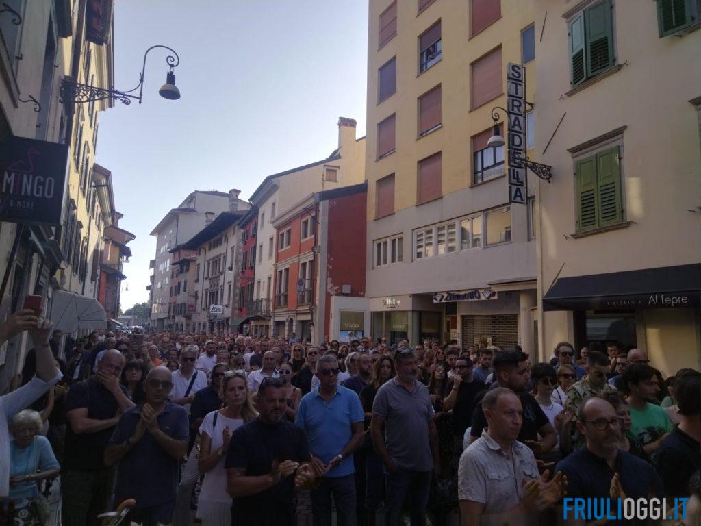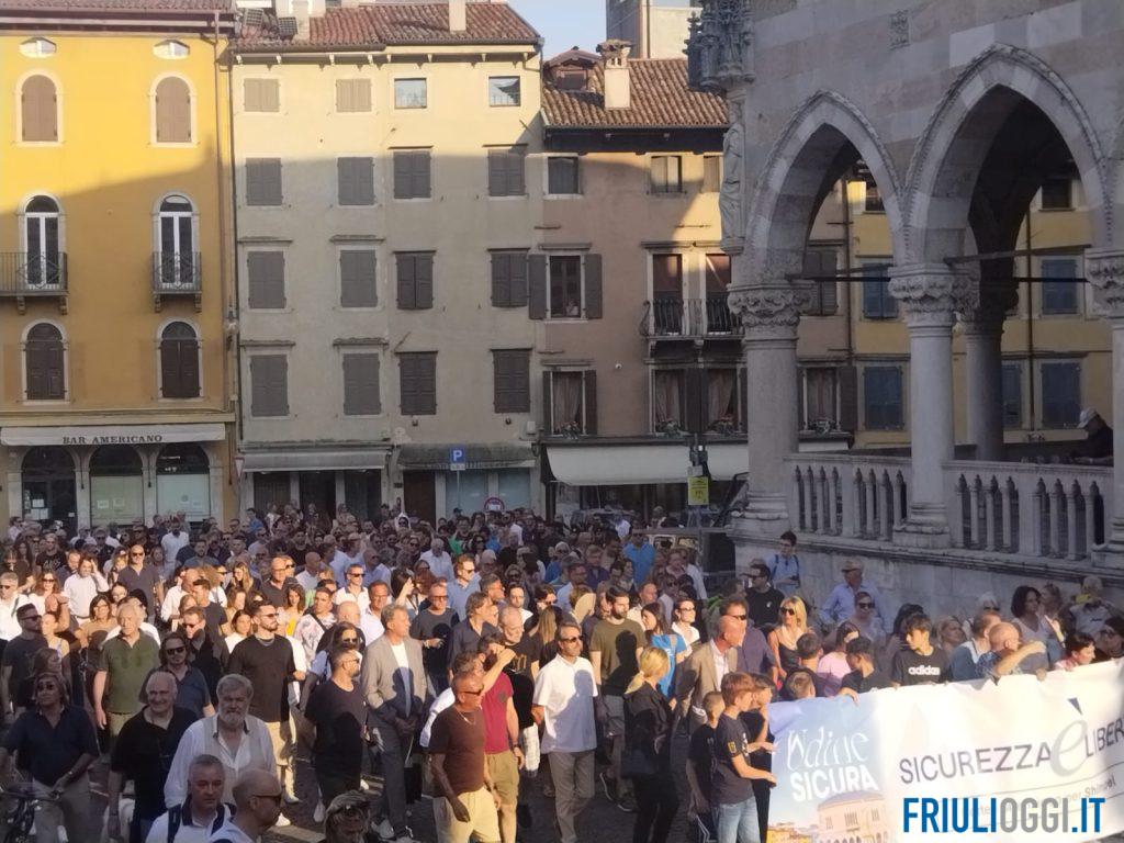 La manifestazione è partita da piazzale XXVI Luglio, risalendo per via Poscolle (con una tappa in vicolo Raddi per deporre fiori bianchi sotto la casa di Shimpei Tominaga, l’imprenditore giapponese morto per aver cercato di sedare una rissa) per proseguire poi in via Canciani, piazza San Giacomo e piazzetta Belloni e giungere in piazza Libertà, davanti al Municipio dove è in corso il consiglio comunale dedicato proprio al tema della sicurezza. Qualcuno, sotto la Loggia del Lionello, ha anche urlato “Dimissioni, dimissioni”, una richiesta rivolta all’amministrazione comunale.
