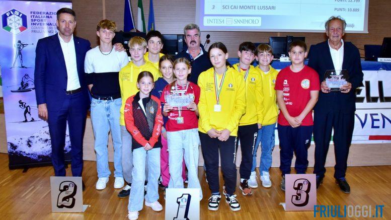 Le premiazioni, introdotte da Gian Luca Crucianelli di Intesa Sanpaolo, hanno regalato le prime emozioni con i “Superbaby” dello sci alpino. A seguire, spazio agli atleti di fondo, freestyle, snowboard, combinata nordica, salto, biathlon, sci alpinismo e skiroll. In totale 198 premiati. Le società vincitrici sono state quattro: ASD Monte Coglians (biathlon), Sci Club 5 Cime (snowboard), Sci CAI Monte Lussari (salto/combinata nordica e sci di fondo) e Sci Club 70 (sci alpino).