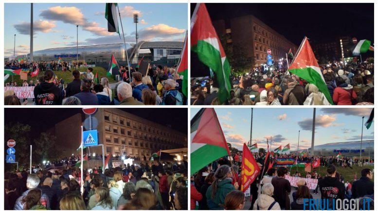 Oltre 800 persone secondo gli organizzatori — 450 per la Questura — hanno preso parte al presidio promosso dal Comitato per la Palestina di Udine davanti allo stadio Friuli (Dacia Arena), dove il 14 ottobre è in programma la partita di calcio tra Italia e Israele. La manifestazione si è svolta in modo pacifico, conferma la Questura, tra canti, balli e cori.