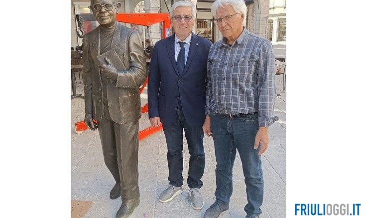 Il capoluogo friulano rende omaggio a Carlo Sgorlon e lo fa con una statua bronzea a grandezza naturale che oggi è approdata in piazzetta Marconi.