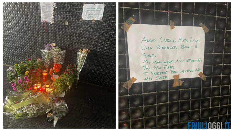 Fiori, messaggi e persino qualche tramezzino, di quelli che chi passava in zona era solito lasciare a Luca Tisi, il 58enne trovato morto nella galleria ex Capitol di Udine.