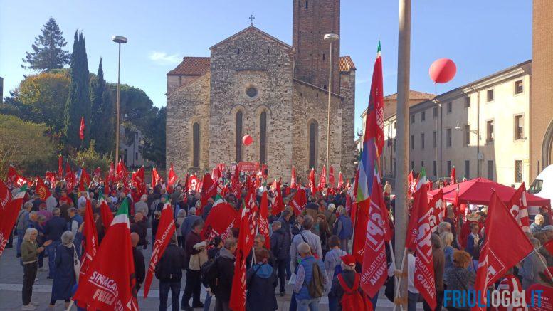 Una piazza gremita e decisa: oltre mille pensionati e lavoratori della scuola si sono riuniti questa mattina in piazza Venerio a Udine sotto le bandiere della Cgil, rispondendo in massa all’appello dei sindacati Spi e Flc. Il messaggio è chiaro: difendere il potere d’acquisto di pensioni e salari, rifiutare i minimi aumenti concessi dal Governo e chiedere interventi concreti per il settore pubblico, tra cui una riforma fiscale capace di contrastare l’evasione e investimenti reali nella sanità e nell’istruzione, sempre più colpiti dai tagli.